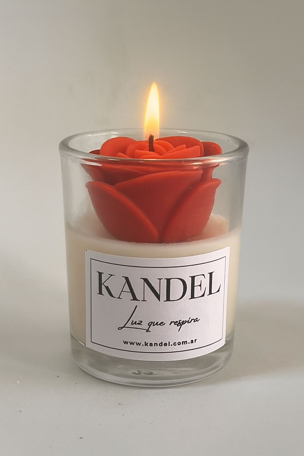Nuestro Vaso Little contiene 40 g de cera de soja pura y natural, acompañada por una rosa “Encanto” de 3 cm (20 g de delicatesen artesanal), un pequeño símbolo de amor, belleza y celebración.